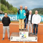 Bei den Senioren wurden die Doppelpartner einander zugelost. Und so kamen fünf Doppelpaarungen zustande, die in einer Gruppe jeder gegen jeden spielten. Der Spielplan wollte es, dass im letzten Match die bislang siegreichen Doppel aufeinander trafen: Peter Botos und Helmut Siefert gegen Werner Dangl und Günter Hochholzer, dem Neuzugang bei den Senioren. Der Matchtiebreak sollte mit 10:6 den Ausschlag geben für Botos/Siefert. Dritter wurden Hans-Martin Moll und Hans Finkenbein.