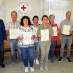 Die seltene Ehrung für 100-maliges Blutspenden wurde Martin Breig und Manfred Brosemer verliehen. Die Ehrung stammt aus dem Jahr 2020 und wurde am Mittwoch nachgeholt. Die Zahl 100 ist nicht mehr aktuell, da die beiden seitdem weiterhin fleißig Blutspenden gehen. Günter Pfundstein lobte ihr außergewöhnliches Engagement und überreichte ihnen gerne die Urkunde und Ehrennadel. Dazu gab es den Applaus der anderen Teilnehmer und der Vertreter vom Roten Kreuz.