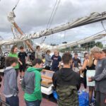Von Jan Wickersheim, Madeleine Boschert und Enja Baumann. Gestartet sind wir im Hafen von Enkhuizen und haben uns mit der Crew und den beiden Schiffshunden bekanntgemacht. Im Anschluss durften wir dann auch schon die Segel hissen und unsere ersten Erfahrungen mit dem Segelerleben machen. Mit 3 Knoten und 3 gehissten Segeln, gingen es dann ab in Richtung Zielhafen. An Deck haben wir dann auch unsere ersten Knoten gelernt. Trotz der starken Schwankungen des Schiffes haben wir den ersten Tag, auch ohne Neptun opfern zu müssen, gut überstanden. Nach sieben Stunden auf hoher See kamen wir alle, abgesehen von ein paar Blasen an den Händen vom Segel setzen unbeschadet in Medemblik an. Den Abschluss krönten ein paar Spiele und eine große Portion vom Kochteam des ersten Tages gekochte Spagetti Bolognese. Mit Gruß von Deck, Jan, Madeleine und Enja