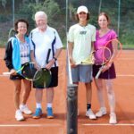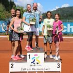 Nachdem Turnierleiter Stephan Manz mit Hilfe der Kinder die beiden 7er-Gruppen ausgelost hatte, brachte Benjamin Künstle beim gemeinsamen Warm-up alle Teilnehmer gehörig ins Schwitzen. Bei der Vielzahl der Spiele ging jede Partie über einen verkürzten Satz bis 4 und ohne Vorteilsregel. Jedes Mixed-Pärchen hatte 6 Matches zu absolvieren. In der 1. Gruppe setzte sich das Ehepaar Anna und Marcus Hug ungeschlagen durch, vor Anita Bürk/Franz Dold, gefolgt von Otti Schwendenmann mit Sohn Manuel. Ebenso eindeutig war das Ergebnis der 2. Gruppe, in der Claudia und Benjamin Künstle die besten waren vor Ute Schwendenmann mit Sohn Jakob, gefolgt von Malia Damm/Lennox Burger. Im Finale, das über einen kompletten Satz ging, zwischen den beiden Ehepaaren Hug und Künstle hatten die Künstles zuerst die Nase vorn, doch die Hugs konnten das Match drehen und siegten 7:5. Für Marcus Hug war der Sieg ein gelungenes Comeback nach jahrelanger Tennis-Abstinenz. Im Spiel um Platz 3 trafen Jakob Schwendenmann mit seiner Mutter Ute auf das Senioren-Mixed Anita Bürk und Franz Dold, beide zusammen 151 Jahre alt. Die Jungen ließen den Alten beim 6:0 keine Chance.