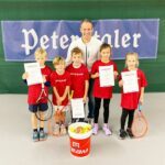 Der Tag begann traditionell mit einem kurzen Warm-up bevor die Jüngsten, der Konkurrenz U9 Kleinfeld, begannen. Sie bewiesen an diesem Tag viel Mut, denn für die meisten war es ihr erstes Tennisturnier. Auf vier Kleinfeldern spielten 16 Kinder jeweils drei Matches. Die Eltern und Großeltern konnten am Spielfeldrand bereits lange Ballwechsel und enge Spiele erleben.