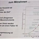 In einem Schnelldurchgang, aber fundiert genau, mit der Kompetenz eines wissenschaftlichen Experten der Zeitmessung, schlüsselte Riehle die weitere bis in Kleinste gehende erfolgreiche Suche nach Genauigkeit bis zum heutigen Tage auf. (siehe Skizze bei der Zusammenfassung der merkenswerten Vortragsgesichtspunkte).