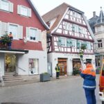 Beim Installieren der Bäumchen erhielten die Geschäftsleute entlang der Hauptstraße Unterstützung von der Jugendfeuerwehr. Am Samstagvormittag hieß es Mädchen und Jungs Lichterketten installieren, die Leitern hoch und runter und weiter zum nächsten Haus. Bei der Aktion halfen auch Jugendwart Michael Florin und die Jugendausbilder der Zeller Feuerwehr tatkräftig mit.