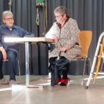 Lilo Fix und Melitta Himmelsbach spielten in ihrem Sketch ein Ehepaar, das einen Ausflug plante. Witzig, mit großer Mimik und Gestik, überlegte das Paar bzw. der Mann, ob Stock oder Schirm mitgenommen wird. Letztendlich entschied dann der Mann beides mitzunehmen.