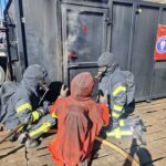 In dem Brandcontainer wurde dann in den drei darauffolgenden Tagen ein Zimmerbrand mit vermissten Personen simuliert – ein für Feuerwehrleute jederzeit wahrscheinliches Einsatzszenario. Jeder Raum der »Wohnung« muss von den Feuerwehrkräften akribisch abgesucht werden. Dies ist gerade unter Zeitdruck und erschwerter Sicht durch den Rauch eine sehr verantwortungsvolle und extrem körperlich belastende Aufgabe. Die in der Simulation vermissten Personen konnten im Brandraum gefunden und von dort nach draußen gerettet werden. Danach wurde die Brandbekämpfung erfolgreich durchgeführt.