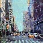 Einerseits sind New York Bilder von dem in Isfahan ausgebildeten in Oberkirch lebenden Maler Ali Sedri (geb. 1985) zu sehen mit Straßenschluchten und der farbig-fiebrigen Unruhe der Stadt, die angeblich nie zur Ruhe kommt. Die Bilder sind Zeichen des Impulses unserer Zivilisation: Mehr, weiter, höher. Innerhalb seiner Serie »Streets« zeigt Ali Sedri eine erstaunliche Fülle von Großstadtbildern, die alle darin Verwandtschaft besitzen, dass in ihren Häuserschluchten das Individuum verloren scheint. Lebendig ist der Strom an Autos in diesen Canyons aus Beton und Stahl. Auch in seinen verregneten Abend- und Nachtbildern, wenn die Scheinwerfer suchen und die Rücklichter davongleiten, wenn die Limousinen und Taxis mit den Leuchtreklamen wetteifern, wer in diesem glosenden Feuer auf dem regennassen Asphalt am eindringlichsten auftrumpft.