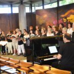Wenngleich bei 25 Sängerinnen und 5 Sängern von einer Ausgewogenheit der Stimmgruppen keine Rede sein kann, beeindruckten die fast ausnahmslos glockenreine Intonation und transparente Dynamik. Spannend auch der Kontrast zwischen den eher meditativen Songs „I’ve got peace like a river“ und „God be in my head“ und dem eher rockig pulsierenden „Sit down servant“. Das beflügelte die Stimmung im Kirchensaal ungemein.