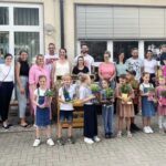 Nachdem alle acht Tiere eingesammelt wurden und es zur Stärkung noch ein Eis gab, kamen alle im Kindergartenhof zusammen. Trotz schlechter Wettervorhersage war das Wetter auf der Seite der künftigen Erstklässler.