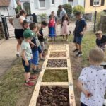 Als Überraschung haben die Eltern und Kinder tolle Geschenke überreicht. Es gab einen selbstgefertigten Barfußweg, eine selbstgebaute „Saftbar“ und von den Kindern verzierte Gummistiefel, die als Blumentöpfe für Minze und allerlei anderer Kräutern dienen.