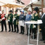 Am Sonntagmorgen marschierte der Spielmannszug mit klingendem Spiel auf, gefolgt von Ulanen und Gewehrträgern. Nach dem üblichen Gang durchs Städtle hatte wegen der Baustelle am Rathaus ein kleiner Umweg zum Kanzleiplatz geführt. Dort übernahm die Stadtkapelle unter Leitung von Dirigent Stefan Polap das musikalische Ruder. Nachdem stellvertretender Kommandant Lothar Schober der Obrigkeit die Ankunft der Formation förmlich gemeldet hatte, trat Bürgermeister-Stellvertreter Hannes Grafmüller ans Mikrophon. Bürgermeister Pfundstein hatte sich wegen einer besonderen Familien-Angelegenheit entschuldigen lassen.