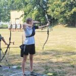 Die erwachsenen Schützen*innen starteten am Sonntagnachmittag, die perfekten Bedingungen zum Bogenschießen, die totale Windstille aber auch stehende Wärme, Konstantinos Zampras der in der Schützenklasse Recurve startete, kommentierte „der Grieche braucht die Sonne“ und freute sich, an der Landesmeisterschaft teilzunehmen. Auch er hoffte auf die magischen 500 Ringe an diesem Tag. Kurz vor dem zweiten Durchgang sah es gut aus für Konstantinos Zampras, so dass es dafür reichen könnte – jetzt nur noch die letzten Passen gut zu Ende bringen. Sabine Herm scherzte in der Pause und sagte, „mach doch 520 Ringe draus“, und es wurden 526 Ringe und der 14. Platz, und damit das Leistungsabzeichen geschafft!