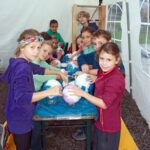 Wenn es stärker regnete, fanden die Spiele, Basteleien und Malereien in den beiden von der AWO aufgestellten Zelten statt. Leider knickten am Unwettertag ein paar Stützen ein. Das Schöne war, dass wir ein gesamtes Zeltgestänge gespendet bekamen und so das Zelt wieder aufgebaut werden konnte.