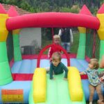 Noch ein Schnäppchen vom Flohmarkt gefällig? In der Garage hatte das Flohmarktteam einige Schätze aufgebaut und auch in alten Büchern konnte gestöbert werden. Auf der grünen Wiese gab es Gelegenheit für die kleinen Gäste, sich auf der Hüpfburg auszutoben. Sie ist Eigentum der Seelsorgeeinheit und kommt bei kirchlichen Festen zum Einsatz.