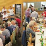 Im Pfarrheim sitzen die Gäste, die es gern etwas ruhiger bevorzugen. Und draußen treffen sich alle, die die spontane Begegnung mit den anderen Besuchern mögen, die auf dem Festplatz ankommen. Die Bedienungen hatten alle Hände voll zu tun, um dem Ansturm der Gäste gerecht zu werden. Ob Tellergericht, Salat oder Pommes mit Bratwurst – es war für jeden Geschmack etwas dabei. Die Frauengruppe bot wieder ein reichhaltiges Kuchenbuffet an, das gut nachgefragt wurde. Die selbst gebackenen Kuchen sind auch wirklich lecker und werden gerne mitgenommen.
