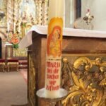 Mit einer großen Schar Ministranten waren Pater Christoph Robak, Pater Irenäus Wojtko und Pfarrer Gerner mit den Lektorinnen in die festlich geschmückte Kirche eingezogen. Zu Beginn der Feier zündete Pfarrer Gerner die neue Marienkerze an und erklärte: „Die Kirche ist der Mutter Gottes geweiht und zu ihren Ehren zünden wir die Kerze an.“ Viele Menschen würden in der Marienkirche Zuflucht suchen, was auch in dem Motiv der Kerze zum Ausdruck kommt.