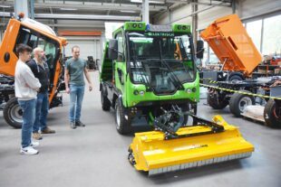 Noch sind Kommunalfahrzeu-ge mit Verbrennungsmotoren Standard. Bei Ladog konnte aber auch ein vollelektrisches Modell besichtigt werden. „Unsere ersten Elektrofahrzeuge laufen in der Schweiz in St. Gallen“, berichtet Brigitte Guggenbühler – die Zukunft hat auch in Zell begonnen. Aus bildungsmeister Michael Hu-ber (links) führte die Besu- chergruppen durch die Werkshallen. Als Souvenir für die jungen Besucher wurden Handyhalter aus Aluminium hergestellt.