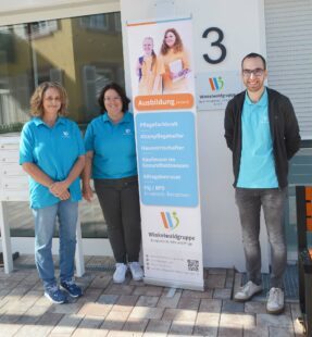 Seit diesem Jahr ist die Winkelwaldgruppe Nordrach mit dem Seniorenzenturm Am Untertor auch in Zell a. H. vertreten. Nadja Jung (Pflegedienstleitung Winkelklinik, Mitte), Nico Lehmann (Assistent der Geschäftsleitung) und Andrea Reich (Pflegedienstleitung Seniorenzentrum Am Winkelwald und Am Untertor, links) erläuterten die vielfältigen Ausbildungsmöglichkeiten von der Pflege über die Kauffrau im Gesundheitswesen bis hin zum Hauswirtschafter.