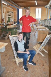 Wer nach mehreren Firmenbesuchen beim „Tag der Ausbildung“ eine Pause notwendig hat, der ist bei Holzbau Gottfried Lehmann genau am richtigen Platz. Aber bevor man auf dem bequemen Strandstuhl Platz nehmen kann, heißt es erst einmal sägen, schrauben, tackern… Das tolle Souvenir findet dann sicherlich zuhause Platz im Jugendzimmer. Obendrein gab es viele Infos über den Beruf des Zimmerers, der Häuser, Dachstühle und auch Strandstühle fertigen kann.
