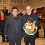 Ein „rundes“ Jubiläum braucht selbstredend eine Gratulationscour mit Dankesworten, Blumen und Geschenken. Das bezog auch die Sponsoren und die vielen Helfern mit ein, die zum Gelingen des Konzerts beitrugen. Bereits während des Konzerts war das Wirken des verstorbenen Ehrenmitglieds Adolf Herrmann gewürdigt worden. Ein besonderer Dank erging an die Stimmbildnerin Monika Warthmann-Bührer und die Pressereferentin Sabine Künzel, die auch die Texte für die Moderation und die Ansagen verfasst hatte.