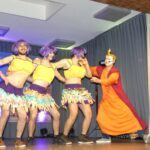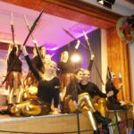 Martialisch-rhythmische Klänge veranlasste biegsame „Hüpfdohlen“ zu einem mit Speeren bewaffneten Tanz, von Zugaberufen belohnt. Geburtstagsdohle Lena Franke erhielt auf der Bühne ein Geburtstagsständchen samt Kuchen, daraufhin donnerte eine Konfettikanone. Einmal auf die Tische und zu Boden gefallen, sorgte das handlich-glitzernde Jubelzeug fortan für spontan wiederkehrende Jubelaktionen. Dazu schoben entsprechend Veranlagte das Jubelmaterial auf ihrem Tisch zu Jubelhäufchen zusammen, um es bei jedem sich bietenden Anlass jubelhauchend in die Luft zu werfen.
