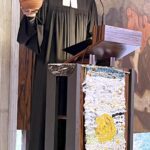 Frank Wellhöner hatte ein kleines Geschenk vorbereitet, um der Pfarrerfamilie Martini für die Vertretung während er Vakanzzeit zu danken. Leider konnte Deborah Martini aufgrund von Krankheit nicht an dem Gottesdienst teilnehmen. Er dankte auch Dekan Rainer Becker, der in der ersten Phase der Vakanz vertreten hatte.