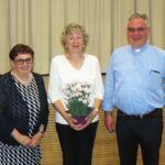 Heiner Krämer ist seit 25 Jahren als Hausmeister bei der Kirchengemeinde tätig. „Sein Einsatzgebiet umfasst alle Gemeinden der Seelsorgeeinheit und er ist ständig am Telefonieren, um seine Arbeit zu koordinieren“, erklärte Pfarrer Gerner. Ebenfalls seit 25 Jahren ist Gisela Albrecht Mitarbeiter der Kirchengemeinde. Ihre Einsatzgebiete sind der Blumenschmuck in der Kirche, die Pflege der Pfarrgärten sowie das Öffnen und Abschließen der Kirche. Außerdem ist sie seit zehn Jahren für den Bibelgarten auf dem Kirchplatz verantwortlich.