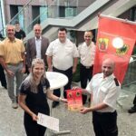 Im Beisein der Vertreter von Feuerwehr und Politik, wurden neben der offiziellen Partnerschaftsurkunde auch eine Fahne, sowie ein Wimpel als Zeichen der Partnerschaft ausgetauscht.