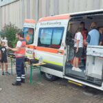Das Rote Kreuz war mit einem Krankentransportwagen (KTW) und zwei weiteren Gerätewagen (GW SAN) vor Ort. Den Schülern wurde die Einrichtung eines kompletten Behandlungsplatzes erklärt und gezeigt. Interessierte konnten auch im Rettungswagen als „Patient“ Platz nehmen.