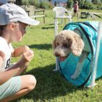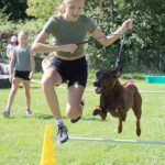 Es galt über wackelige Stege oder über ein Hängetuch zu laufen, Schritt für Schritt eine Leiter zu überqueren, durch einen Sacktunnel zu krabbeln und über Hürden zu springen. Mit Ruhe, Leckerli und Tipps der Betreuer wurden die Übungen von Hund und Kind toll gemeistert.