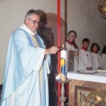 Zu Beginn des Gottesdienstes weihte Pfarrer Bonaventura Gerner, der mit den beiden Patres Irenäus und Christoph konzelebrierte, die traditionell gestiftete Votivkerze und entzündete sie an der Osterkerze.