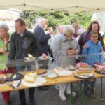 Dieser Einladung folgten die vielen Kirchenbesucher gerne – bei Sonnenschein, reichhaltigem Kuchenbuffet und der Musik der Blaskapelle gab es Gelegenheit zu Begegnung und Gespräch.