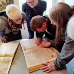 In zwei Gruppen wurde dann die „Schwarzwälder Post“ erkundet. Inhaber Hanspeter Schwendemann begrüßte die Gruppen und führte sie direkt in das Zeitungsarchiv, wo er schon die Zeitungsbände mit den Ausgaben von 1959 vorbereitet hatte. Unter der Rubrik „Geburten“ konnte jeder seine Geburtsanzeige nachlesen. Interessant waren auch die Werbeanzeigen von Firmen, die heute zum Teil nicht mehr existieren. Am liebsten hätten die Schulkameraden die ganzen Zeitungsbände durchgeblättert, aber aus zeitlichen Gründen war dies leider nicht möglich.