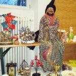 In der Haushaltsecke vor der Bühne sind aufgebaut: Ein Brotbackautomat, ein Minikühlschrank fürs Camping, eine alte Stehlampe und weitere Lampen, Uhren in verschiedenen Größen und Besteck. Ein schöner großer Weidenkorb ist noch sehr gut erhalten, kleinere Weidenkörbe gibt es auch. Braucht noch jemand einen Einkochautomat?