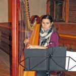 Annemarie Weinzierl an der Harfe spielte mit viel Hingabe ihr besonderes Instrument. Mit flinken Fingern zupft sie die Seiten und es entstehen so schöne Melodien – da war sehr still in der Kirche und alle hörten sehr gespannt zu.