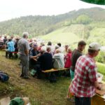 Bei herrlichem Sonnenschein konnten sich die vielen Besucher an dem traumhaften Ausblick über das liebliche Oberentersbachtal nicht genug satt sehen, gar manche kannten diesen schönsten Talblick noch gar nicht. Am Grill und mit den Getränken hatte man alle Hände voll zu tun, um die Gäste zu bewirten. Grillmeister »Beppo« hatte das Beste daraus gemacht. Fein war auch das frisch gebackene Bauernbrot vom Halterhof. Einlagen mit fröhlich gesungenen Wanderliedern schallten über das Tal, so verging die Zeit allzuschnell.