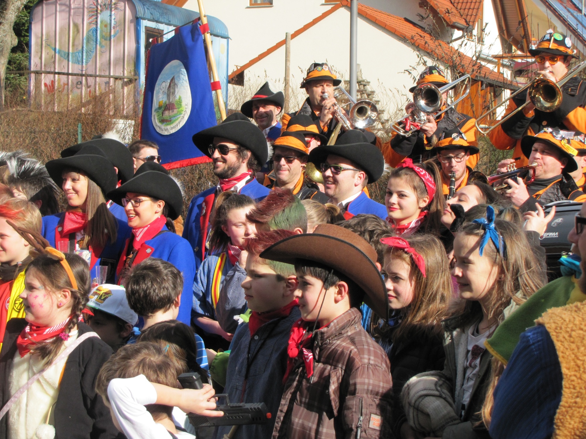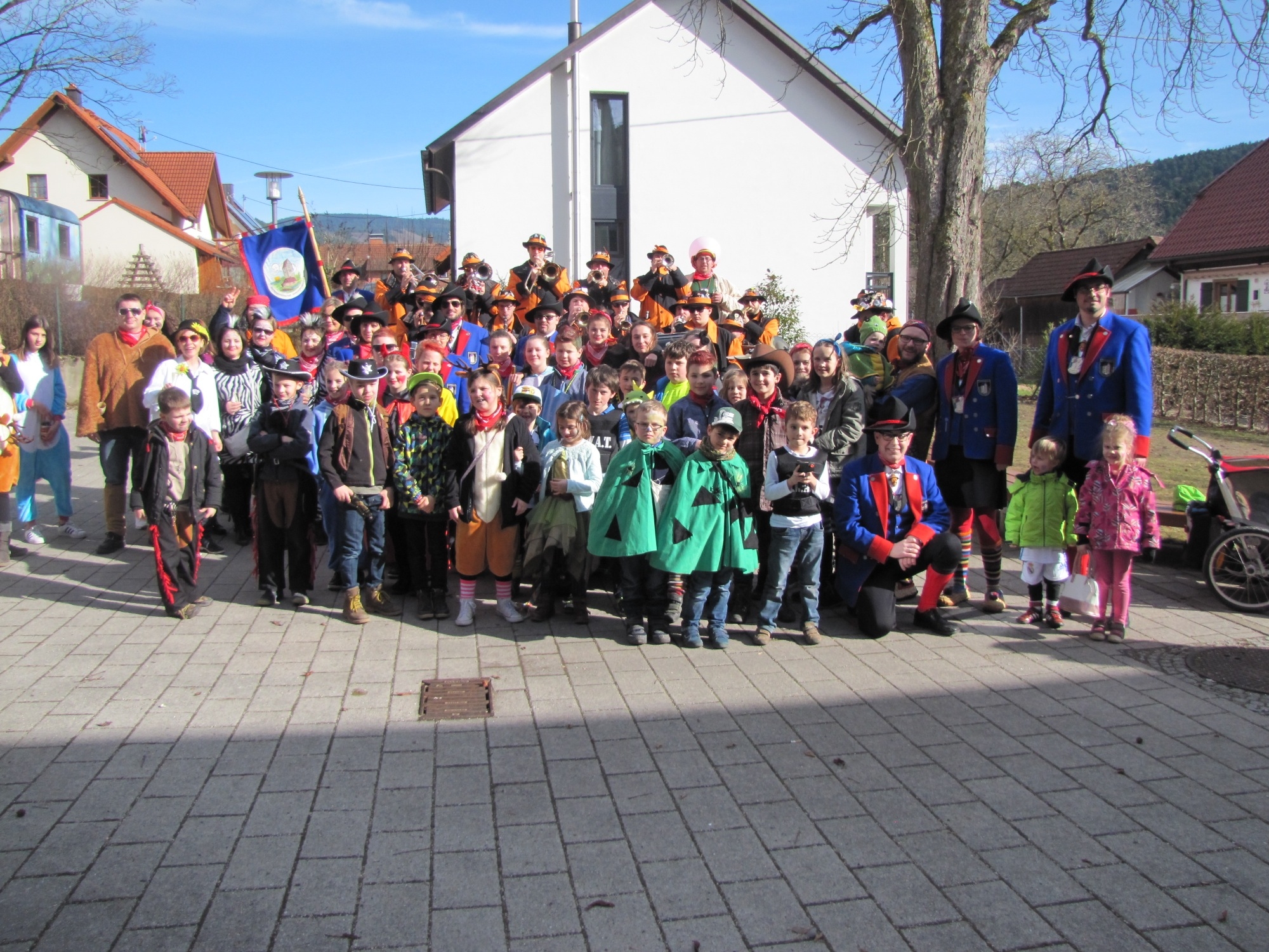 Es war schon faszinierend, was sich am Schmutzige alles so abgespielt hatte. Der Platz hinter dem Dorfgemeinschaftshaus war übersät von kleinen und großen Narren. Mittendrin Ortsvorsteherin Andrea Kuhn, die nach alter Gewohnheit zur Stärkung eingeladen hatte. Sie war umringt von den vielen Narren, die sich herzlichst bei ihr bedankten.