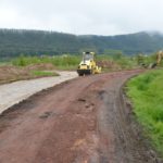 Im entstandenen Raum wird nach der Kalkung eine Schotterschicht 20 Zentimeter stark zur Baustraße aufgebaut.