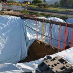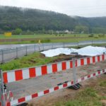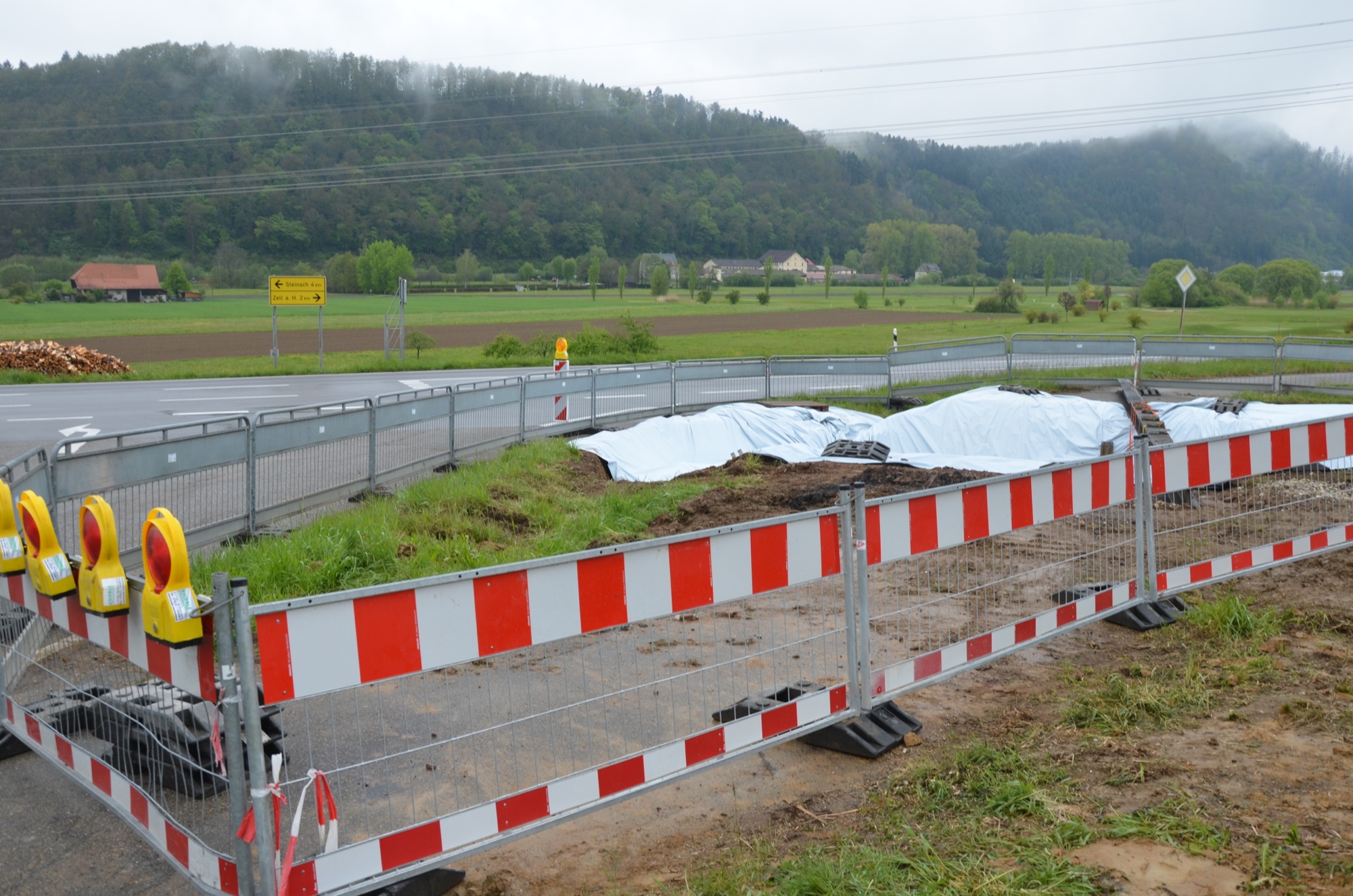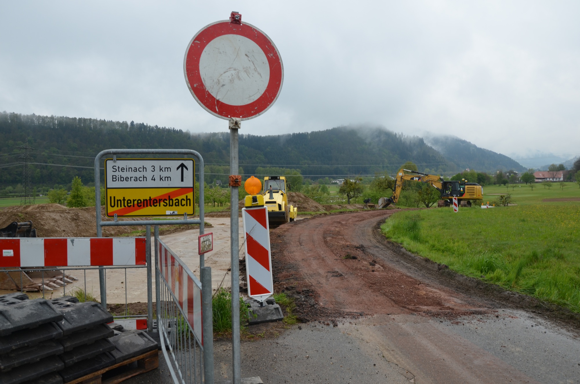 Nach dem Hochwasser im Juli 2014 wurde die Entlastungsleitung geplant. An das westliche Ende des unter der Kreisstraße hindurchgepressten Rohrs wird Polier Griesbaum ein Regenwasserkanal anschließen bis zu einem Schacht am Bahngleis. Dafür wird der Feldweg zwischen Kreisstraße und Bahngleis geöffnet.