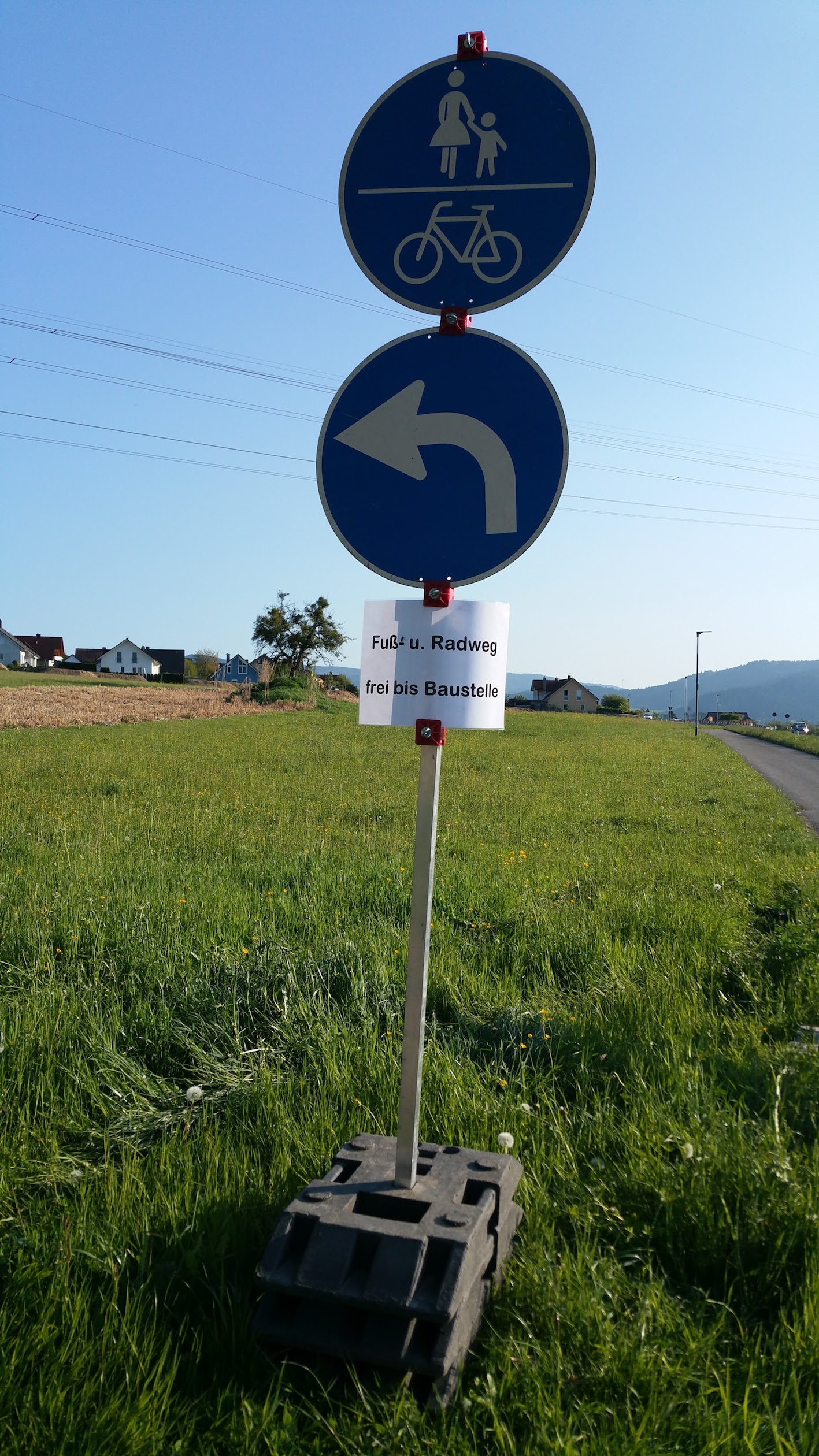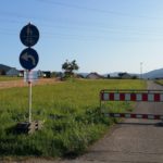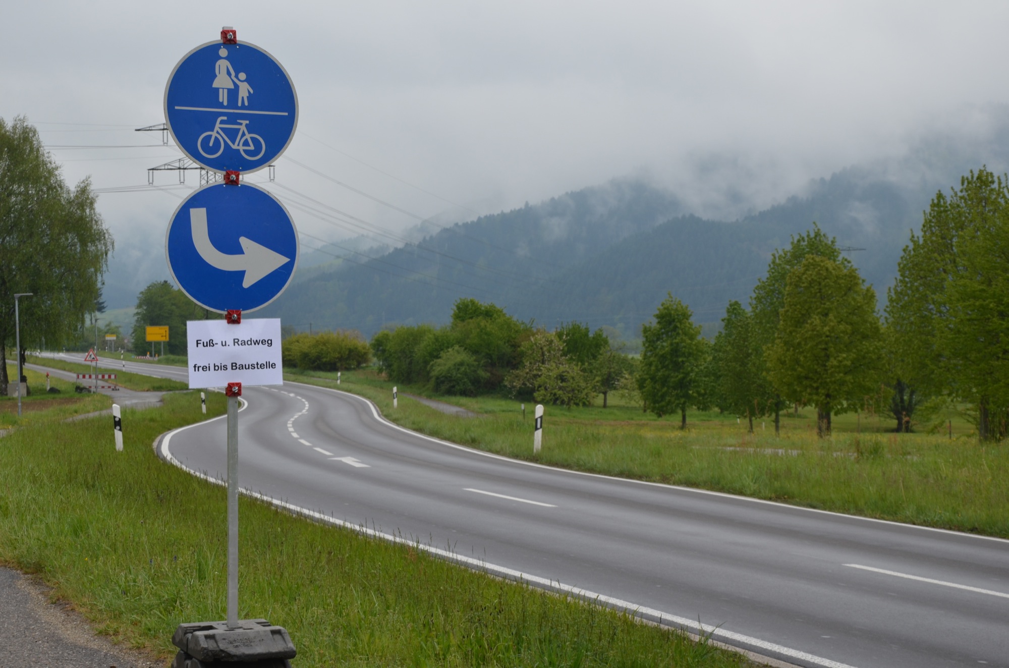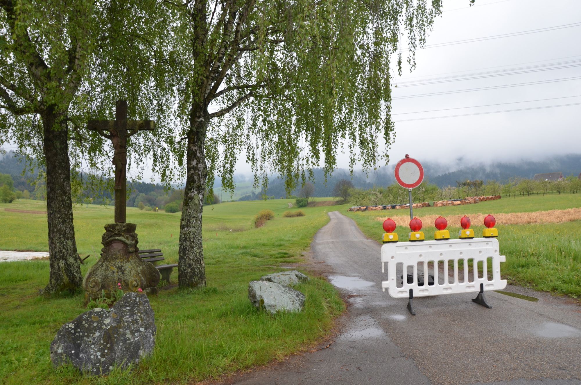 Die Bauarbeiten haben den östlich der Kreisstraße liegenden Radweg und die schmale Straße oberhalb des Neubaugebiets unbefahrbar gemacht. »Die obere Zufahrtsstraße in die Wohnstraße wird breiter«, erklärt Ulrich Harder, örtlicher Bauleiter vom Planungsbüro »Wald und Corbe«. Damit diese Straße entstehen kann, musste die schmale Straße teils abgebrochen werden. Nach der Kalkung wird auch die Zufahrtsstraße geschottert. Liegt der Schotter, wird die Straße vom »Hillig« zum Kreuz wieder geöffnet.