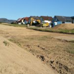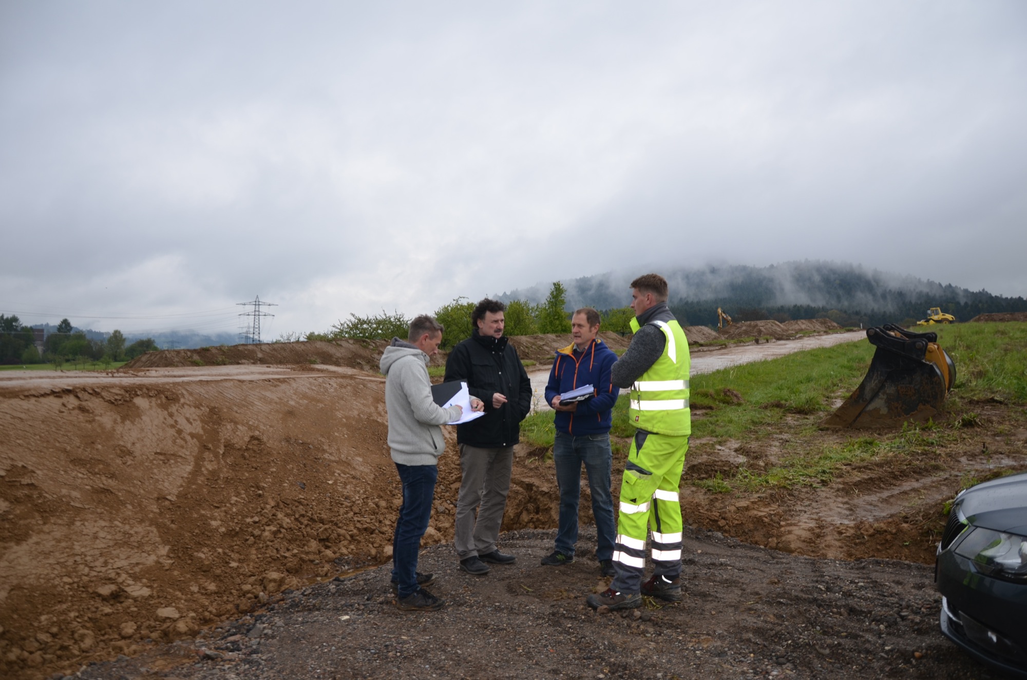 Ausgehoben hat Frank Griesbaum – nach abtragen des Oberbodens – lehmiges Material bis zur Unterkante der Frostschutzschicht. In der Fachsprache »ausgekoffert bis zur Koffersohle«. 300 Kubik Erde werden aktuell abgefahren. Bis das Gebiet erschlossen ist werden es an die 4.000 Kubik sein.