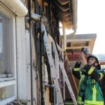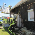 Zwischenzeitlich wurden ein Teil der Holzverschalung und der Isolierung von den Feuerwehreinsatzkräften entfernt. So konnte gezielt das Löschwasser eingesetzt werden. Parallel dazu mussten die Atemschutzträger sowohl im Innen- als auch im Außenbereich verschiedene Einsätze leisten. Auch das Belüftungsgerät wurde eingesetzt, um den Rauch aus dem Wohnbereich zu entfernen.