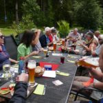 Schon bald entdeckte man versteckt im Wald, nahe der Wasserscheide Donau/Rhein und direkt am Westweg, die Elzquelle. Auf bequemen Waldwegen, im Winter ein bekanntes und beliebtes Langlaufgebiet und im Sommer ein Eldorado für Biker, wanderte man dem Skilift entlang dem Rohrhardsberg entgegen. Sobald es die Lichtverhältnisse zuließen, waren die Wege von unzähligen Wald- und Wiesenblumen gesäumt. Selbst der Hang des Skilifts, den die Wandergruppen gegen Mittag erreichte, blühte in allen Farben. Auf der Wiese vor dem urigen Ski- und Wanderhäusle am Fuße des Lifts hatten die freundlichen Wirtsleute schon eine Mittagstafel im Grünen gerichtet, und bewirteten die Wandergruppe aufs Beste. Frisch gestärkt machte man sich auf den Weiterweg. An dem mächtigen Ochsenhof vorbei führte der Weg zur alten Schule von Rohrhardsberg, heute unübersehbar ein Künstlerhaus. Von nun an ging es wieder bergauf. Vorbei an den rauschenden Elzwasserfällen und auf dem U(h)rwaldweg mit seinen komfortablen Vogelhäuschen in Form von Kuckucksuhren erreichte man wieder die Höhe. Man passierte das schmucke Korallenhäuschen und den mächtigen Farnbauernhof inmitten von saftigen Bergwiesen. Mit dem Erreichen des Westwegs auf der Weißenbacher Höhe war die Runde geschlossen. Guido Lerch bedankte sich bei den Tourenführern Barbara und Winfried Armbruster herzlich für die Organisation dieses tollen Wandertages und »bestellte« schon einmal eine Tour für nächstes Jahr. Dies konnten die Teilnehmer nur mit Applaus bestätigen.