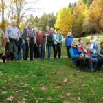 Vom Ausgangspunkt am Mühlenstüble führte der Weg zunächst durch den Ortsteil Allmend. Bei der Brücke bog man ab und wanderte sanft ansteigend durch die Herbstwälder im Michelbach. Dieser Weg und die versteckt im Wald gelegene, ansprechende Freizeitanlage war vielen aus der Wandergruppe nicht bekannt. Man lernt eben in der Heimat auch immer wieder Neues kennen. Am Jüdischen Friedhof angekommen, fanden die Hinweistafeln zu der Geschichte des Friedhofs großes Interesse bei den Teilnehmern. Nach der Zerstörung in der NS-Zeit und Wiederaufbau nach dem Krieg wurde hier im Jahr 1977 mit Meta Beilstein, der Tochter des ersten Verwalters der Lungenheilstätte Rothschild, die letzte Person auf eigenen Wunsch bestattet.