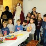 Das Glockengeläut der Nikolauskirche verstärkte noch die romantische Stimmung des schönen, milden Abends. Über das Neubaugebiet wanderte man hinauf zum unbeleuchteten Oberen Hillig und wieder hinunter ins Oberdorf. Hier, bei Familie Lerch, fand die große Gruppe einen neuen, warmen und schön geschmückten Raum vor, in dem die Tradition des Nikolausabends für die Wandererkinder fortgesetzt werden konnte. Tradition sind auch schon die heißen Würste nach der Laternenwanderung und das erste Weihnachtsgebäck. Nun galt es noch, den Entersbacher Nikolaus herbeizusingen, der sich extra für die Wandererkinder so früh auf den Weg gemacht und sogar zwei Schwarze mitgebracht hatte. Viel Lob und auch etwas Tadel hatte der Nikolaus wieder in seinem goldenen Buch aufgeschrieben, denn der Heilige Mann sieht ja bekanntlich alles. Aber Auge in Auge mit zwei schwarzen Gesellen versprach auch der frechste Knirps Besserung. Die kleine Frieda trug sogar mit ein klein wenig Unterstützung von der Oma dem Nikolaus ein Gedicht vor; das war wirklich mutig und lobenswert. Natürlich gab es anschließend für alle Kinder wieder ein Geschenk, und mit einem herzlichen »Niklaus ist ein guter Mann« verabschiedete man den Heiligen und seine schwarzen Begleiter. Mit einem gemütlichen Beisammensein klang der Nikolausabend aus.
