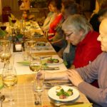 In ihrer lustigen und mit Komik versehenen Art führte Michaela Neuberger durch diesen Abend. Zunächst wurde von ihr nachgefragt, was denn genau Glück ist, wie man Glück empfinden kann. So waren alle dem »Glück« auf der Spur. Mit Geschichten zum Lachen und Schmunzeln wurden die unterschiedlichen Aspekte beleuchtet wie sich Glücksgefühle vermehren können. Gleich zu Beginn hatten alle auf einem kleinen Papier aufgeschrieben, was für jeden persönlich »Glück« bedeutet. Glück bedeutet für die meisten Gesundheit, gute soziale Bindungen, die Familie …. Glück wird aber auch durch Glückshormone in unserem Körper hergestellt und diese kann man auch essen. Vor jedem Menü-Gang wurde erklärt, welche Nahrungsmittel verwendet wurden und weshalb diese die Produktion der Glückshormone in unserem Körper erzeugen. Es gab zum Beispiel Avocadocreme auf Pumpernickel, Feige im Speckmantel, Linsensalat auf Rucola, Tomatencremesuppe mit passenden Gewürzen und Bulgureinlage und Burgunderbraten mit Rahmwirsing und Nudeln sowie ein passendes Dessert aus einer Quarkcremepraline mit frischem Obst. Essen dient eben nicht nur zur Nahrungsaufnahme, es macht auch glücklich. Es ist wissenschaftlich belegt, dass bestimmte Nahrungsmittel die Produktion von Glückshormonen im Gehirn ankurbeln, nämlich Serotonin und Dopamin. Das haben alle ausprobiert.