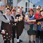 »Fröhlich und lustig sein«, das gelinge gut gestärkt »richtig gut«, bedankte sich Präsident Martin Isenmann bei der ersten Gastgeberin für die herzliche Begrüßung. »Nun können wir in die Fasend hinein donze«, war sein Stichwort für Mändigs-Musik Frontman Uwe Brosamer. Zu Fasendhits zog die Narrenschar mit den Entersbacher Räten bei liebstem Fasendswetter durchs Dorf.