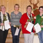 Petra Isenmann hatte noch die ehrenvolle Aufgabe vier Mitglieder für 10-jährige Vereinszugehörigkeit ihren Dank auszusprechen: Irmgard Gureth, Monika Jörger, Annelore Schwarz und Sabine Leopold gehören bereits seit einem Jahrzehnt zu den Landfrauen.