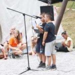 Als erstes wurden die Gäste von Lukas und Colin begrüßt. Einen kleinen Scherz erlaubten sie sich gleich bei der Begrüßung. Absichtlich verwechselten die Zwillinge ihre Namen, um den Leiter der Freizeit Tobias Kollmer zum wiederholten Male zu irritieren. Im Anschluss gaben sie die Bühne für den AWO-Vorsitzenden frei. Heinz Engelhardt freute sich sehr, dass er so viele Eltern, Großeltern, Geschwister und auch ein paar ehemalige Teilnehmer begrüßen durfte, die auf die Gehrmatt gekommen waren um gemeinsam mit den Kindern und den Betreuern den Abschluss der Ferienfreizeit zu feiern. Einen ganz besonderen Gruß richtete er an den neuen Ortsvorsteher Christian Dumin. Er gratulierte ihm unter dem Beifall der anwesenden Gäste zu seiner Wahl in dieses Amt und wünschte ihm viel Erfolg.