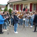 Doch nun wieder zum Stellen des Maibaums. Für die Feuerwehrkameraden gab es keinerlei Schwierigkeiten, den Maibaum an Ort und Stelle zu platzieren. Nachdem der Kranz befestigt war, wurden die benötigten großen Stangen zum Aufstellen des Maibaums bereitgelegt. Dann begann das Aufrichten des Maibaums, was natürlich nicht ohne die Mitwirkung der Unterentersbacher Musikkapelle stattfand. Markus Vollmer, der für den verhinderten Dirigenten Daniel Faißt eingesprungen war, hatte die richtige Liederauswahl getroffen und zügig und gekonnt ging dann alles vonstatten. Nachdem der Maibaum aufgestellt war, gab es großen Beifall von den vielen Zuschauern, wozu auch Ortsvorsteher Christian Dumin gehörte.
