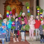 Anschließend segnete Diakon Hoppe die Palmen. Diakon Hoppe lud alle Kinder ein, mit ihm im Altarraum gemeinsam das „Vater unser“ zu sprechen. Mit dem Segen endete dieser Gottesdienst.